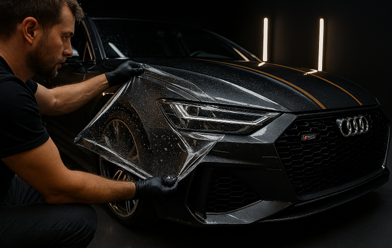 Il PPF (Paint Protection Film) è una pellicola trasparente ultraresistente che si applica sulla carrozzeria dell’auto per proteggerla dai danni quotidiani come graffi, pietrisco, insetti e agenti atmosferici.